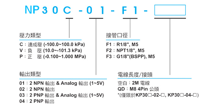 | 項目 | 單位 | NP30C (連成壓) | NP30V (負壓) | NP30P (正壓) | |||||||